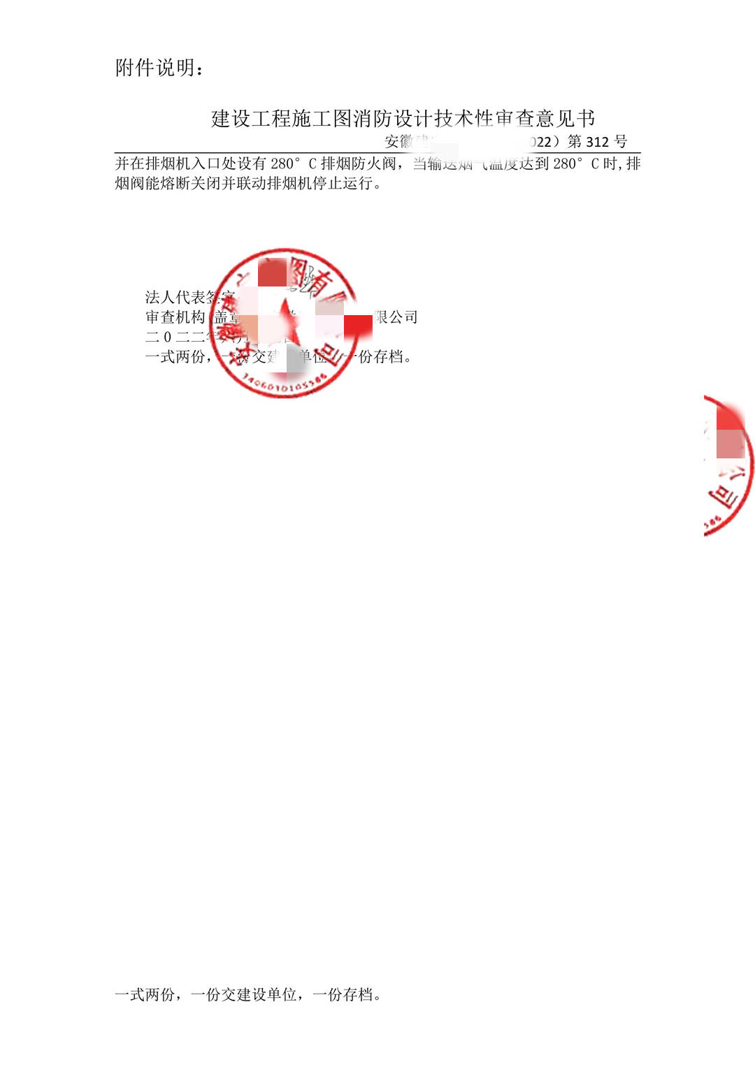 孝感市天安建设工程施工图审查有限公司-机构消防审查意见书